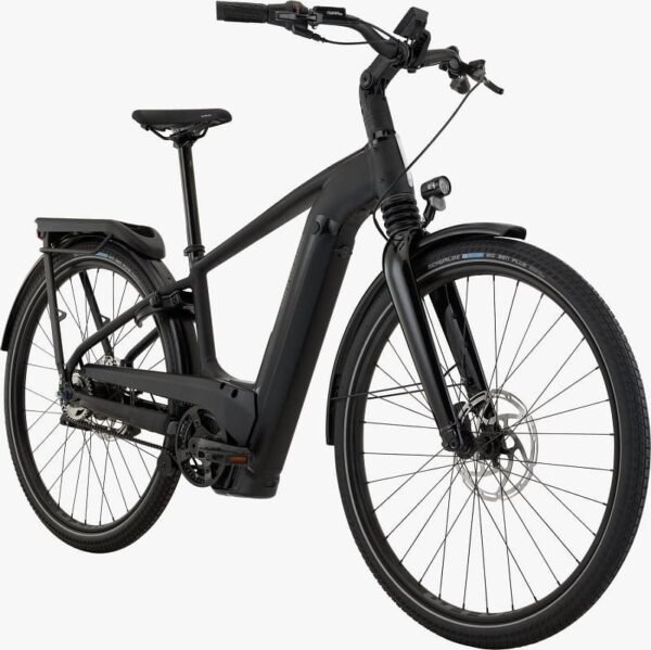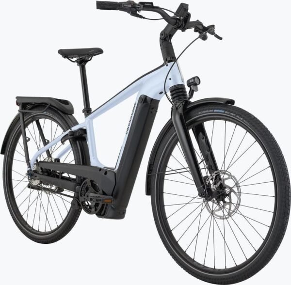 Le design du Cannondale Mavaro Neo 2 est élégant, moderne et parfaitement adapté aux besoins urbains. Il est équipé d’un porte-bagages intégré, vous permettant de transporter vos affaires facilement. Ce porte-bagages est robuste et pratique, idéal pour les courses quotidiennes ou les trajets professionnels. Il est compatible avec des sacoches et paniers, vous offrant plus de flexibilité dans vos déplacements. L’éclairage intégré à l’avant et à l’arrière vous assure une visibilité optimale la nuit. Cela vous permet de rouler en toute sécurité après la tombée du jour, avec moins de tracas.
