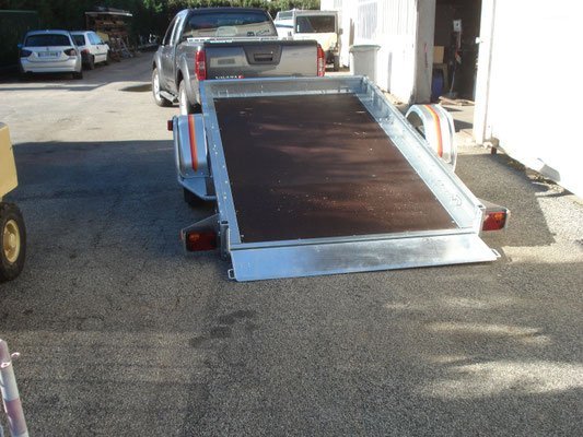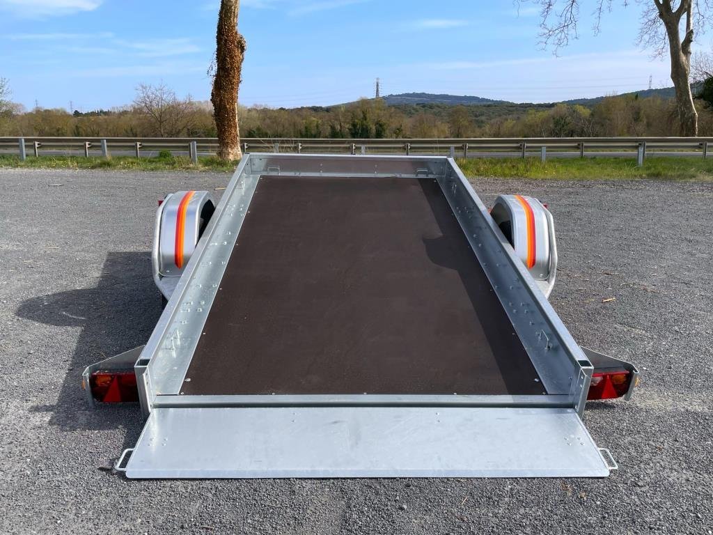 - Un bascullement du plateau simple d’utilisation et un hayon de chargement très utile pour le transport de petits véhicules (quads, motos, tondeuses volumineuses etc.) d’un poids maxi de 915 Kg.