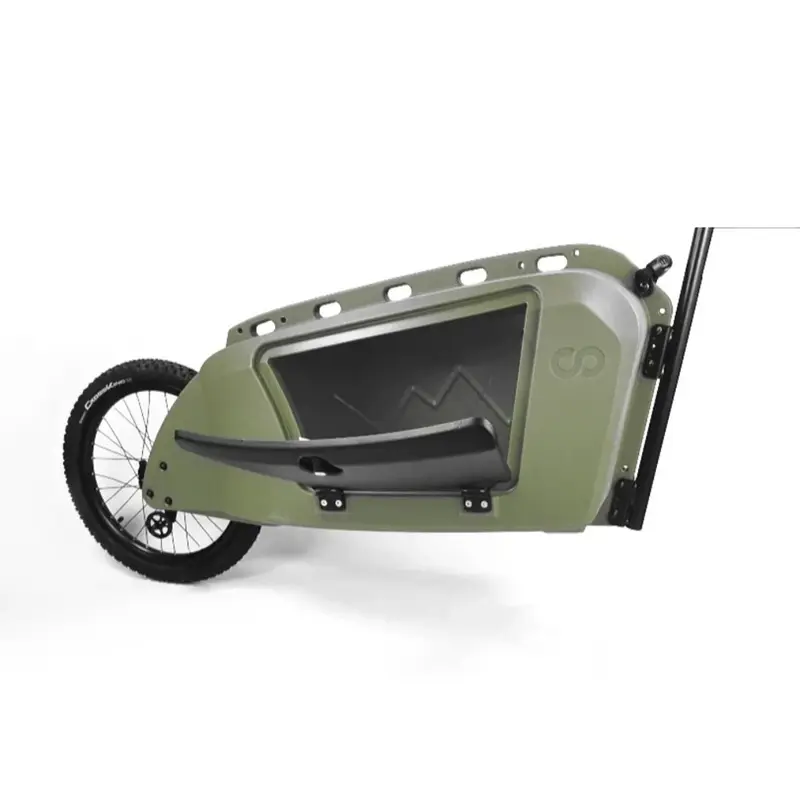 La remorque Kern est conçue en PEHD, un plastique très résistant. Elle est ainsi armée pour résister aux UV et aux températures extrêmes. La coque est légèrement granulée pour limiter la vue des griffures ou autres éraflures dues à l’utilisation. Son arrête centrale longitudinale assure une plus grande solidité que les remorques classiques. Totalement étanche, la remorque Kern est une excellente alternative au vélo-cargo et vous suivra partout et pour longtemps.
