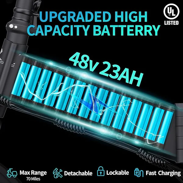 L’un des points forts majeurs du Vélo électrique pliant Ridstar H20 Pro est sa batterie lithium-ion haute capacité. Le vélo est équipé d’un accumulateur d’environ 48 V – 15 Ah (selon version), offrant une autonomie réelle pouvant atteindre 50 à 80 km.