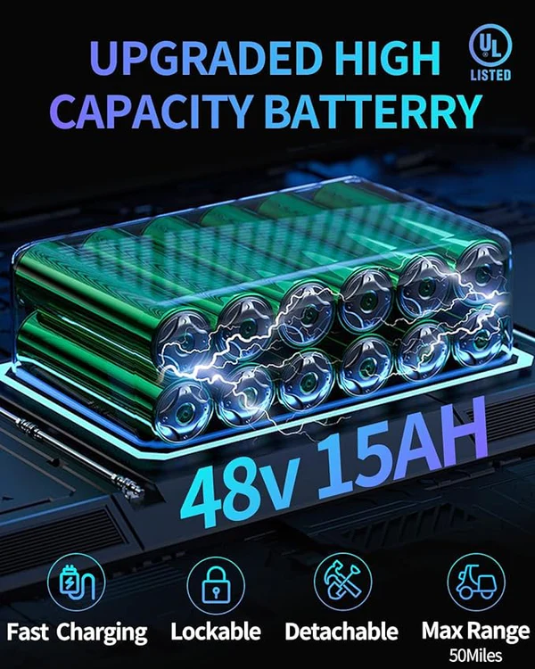 Grâce à cette puissance, le vélo offre une accélération rapide et fluide. Les démarrages sont immédiats et l’expérience de conduite est agréable, même avec un chargement supplémentaire ou un passager léger. Le moteur 1000W fonctionne en harmonie avec les capteurs de pédalage pour offrir une assistance proportionnelle à l’effort fourni par le cycliste, garantissant une conduite naturelle et sécurisée.