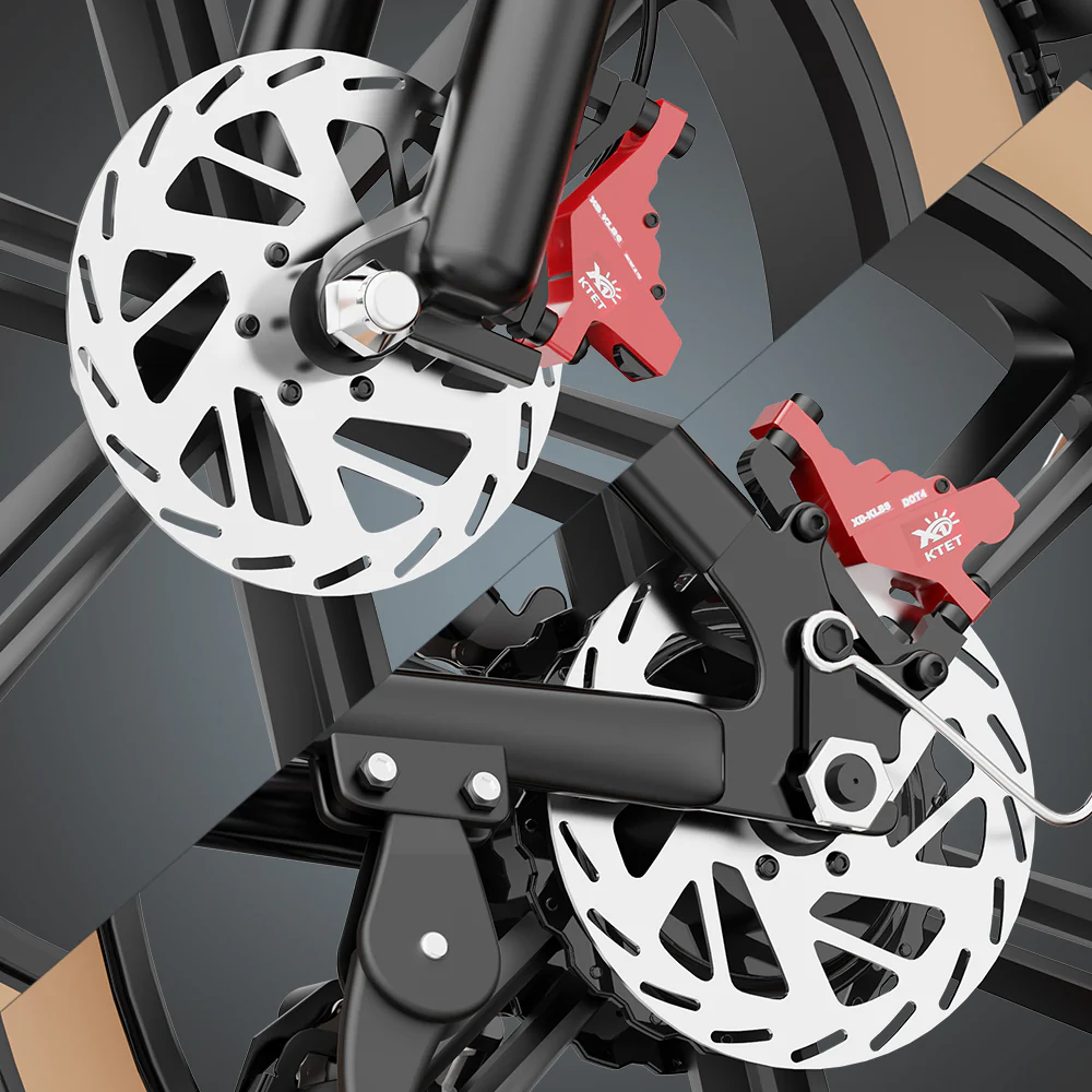 Le vélo électrique YVY est doté d’une technologie de freinage avancée qui garantit l’étanchéité à l’eau et à la poussière, vous offrant une immense fiabilité quelles que soient les conditions météorologiques. La conception favorise la liberté de mouvement et ne nécessite qu’un entretien minimal. Grâce à ce système de freinage plus sûr, vous pouvez explorer librement en toute confiance, en sachant que votre voyage bénéficie d’une sécurité et d’un contrôle supérieurs.