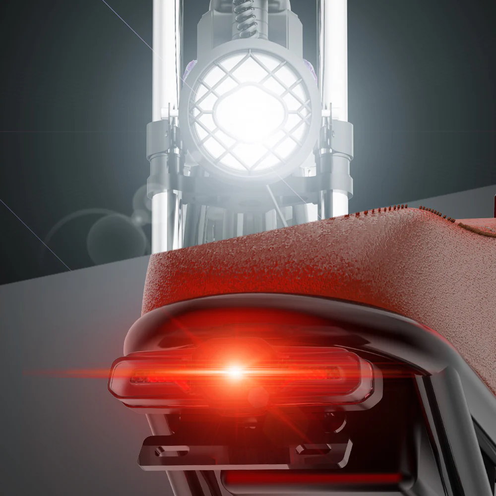 L’éclairage avant LED haute intensité permet de rouler de nuit en toute sécurité, tandis que le feu arrière améliore la visibilité du cycliste.